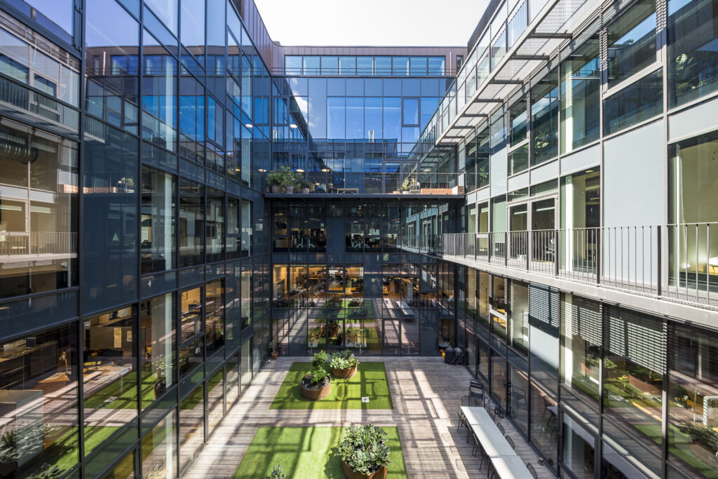 Now it’s a state-of-the-art office property, where flexibility and sustainability have been thought into it from the start. The property was completed in 2016 and received the City of Copenhagen’s honorary award in 2017 for its beautiful architecture. The modern property, with its six floors, red bricks and beautiful details in tombac at the window sections, fits perfectly into the surroundings – which are far from the muddy Adelgade quarter of the 17th century.